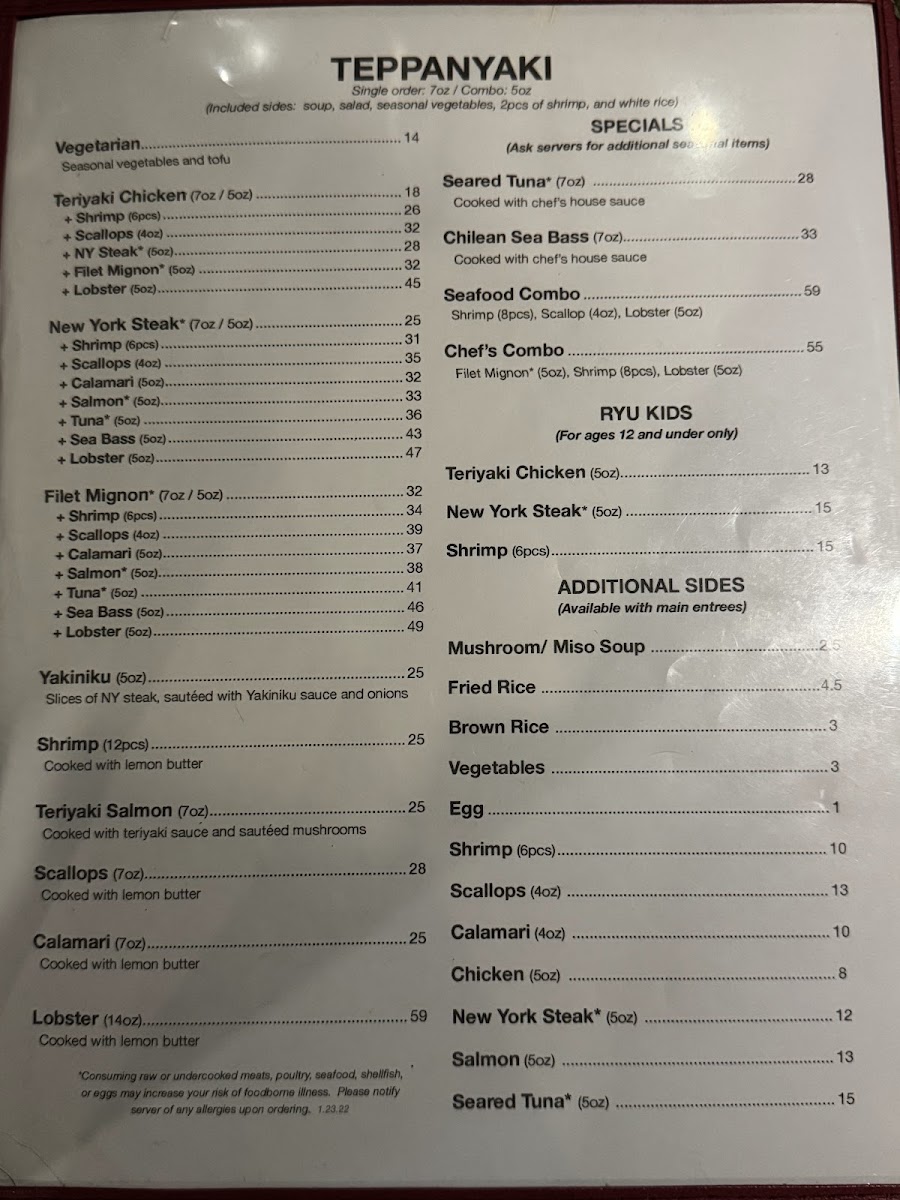 The sashimi salad and seared beef sashimi promise an exquisite experience, perfect for those seeking bold flavors. Positive customer experiences echo throughout reviews, emphasizing the warm atmosphere and attentive, knowledgeable staff. Diners often rave about the affordable prices given the exceptional quality, making Ryu the perfect destination for casual gatherings or special celebrations. Discover the blend of tradition and innovation; Ryu Sushi & Teppanyaki is a feast not merely for the palate, but for the soul.